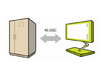 UPS 모니터링 시스템의 가장 기본적인 방식으로 UPS와 컴퓨터간에 1:1 통신을 기본으로 하며, 방식의 특성상 통신거리는 15M로 제한된다. UPS와 시스템을 감시할 컴퓨터와의 거리가 가까울때 운영된다. UPS와 감시시스템과의 거리가 15M 초과하게되면, RS232C를 변환기(Converter)를 사용하여 RS422C이나 RS485방식으로 통신거리를 1.2Km까지 확장할 수 있다.
